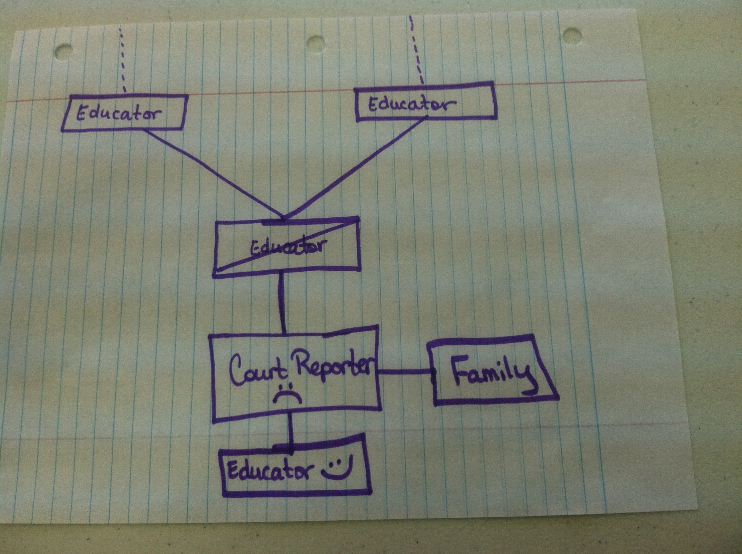 In this second diagram, the teacher is telling the story of how she became an educator. She comes from a long line of teachers and although she initially resisted what seemed like a predictable career path, she eventually embraced what now feels like her calling. While school-aged children are still contemplating their future careers, we have found that some of them similarly refer to the talents or interests they have inherited from their families or to “traditions” that ran down through various generations.