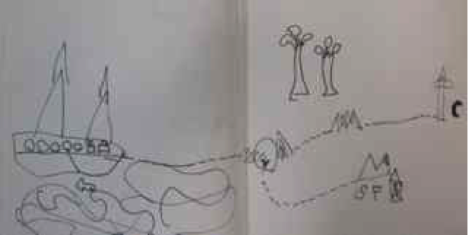 It is a cold week here in Calgary and so our discussion about where we would licalgarymapke to walk turned out to be a great escape. Our class decided that we wanted to walk to Hawaii. Below is a description of our route and our thoughts on what we would need. We are including rough sketches of our thinking. Our plan is to leave Calgary today and walk west over the Rocky Mountains, through the middle of British Columbia and over the coastal mountains to Vancouver. Once we are in Vancouver we will walk south to San Francisco, along the west coast. We chose San Francisco as our destination before crossing the ocean because we would like to meet the people from our walking party who live there. Once in San Francisco, we would buy a sailing ship to take us to Hawaii. … Our supply list for the boat ride and stay in Hawaii was more detailed: Water, Juice, Gatorade, Food, Coconuts, Ice Cream, Life Jackets, Bathing Suits …”