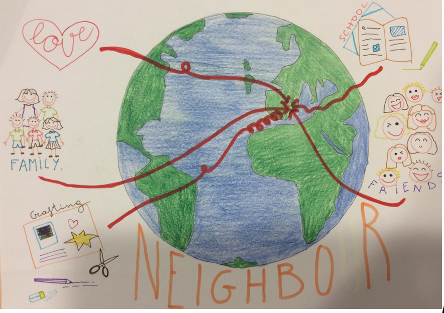 One vision I have for Out of Eden Learn is for it to become a place where increased understanding of others helps students situate themselves better in the world – a spirit that’s captured in this student work by “cllorens” from Barcelona Spain. She writes, “I drew the globe because I wanted to show that my neighborhood is not the only place; I’m not the only one in the world.”