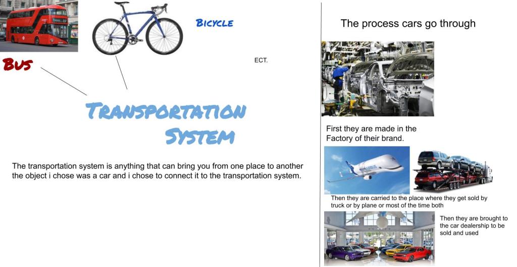 Other students illustrated the steps in the distribution or sale of their chosen object, like this system of car transport to a dealer: