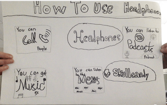In the next diagram, the student identified a possible system (the use of headphones), but it’s not clear how the different parts relate to each other: